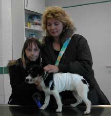„Jessy“, die Jack-Russel Terrierhündin der Familie Schulte, ist schon ein bisschen älter und wurde kastriert. Als wäre nichts passiert, kam sie nächsten Tag schon wieder putzmunter und wedelnd in die Praxis gelaufen.