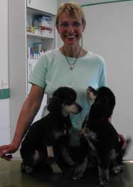 „Sammy“,die Malteser–Yorki–Mix-Hündin von Frau Reuß, wurde geimpft und auch die Karthäuserdame von Frau Brix van Klev kam zur Impfung und wurde gleichzeitig gechipt.
