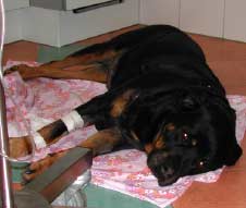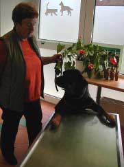 Ganz aufregend war es bei „Cora“, der 12-jährigen Rottweilerhündin von Familie Hösle. Cora kennen wir schon ihr ganzes Leben , sie ist vor vielen Jahren von Dr. Rogalla goldimplantiert worden und läuft seitdem trotz schwerer Arthrose bis heute recht gut, obwohl sie schon so alt ist. Sie war schon mit vielen kleinen und großen Wehchen bei uns. Sie gibt jedes Mal Pfote und freut sich so sehr bei uns zu sein, dass sie ganz alleine auf den Behandlungstisch steigt.