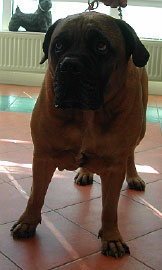 Da war „Paul“, der Bullmastiffrüde von Herrn Derkes, schon ein anderes Gewichtskaliber. Er wurde Frau Dr. Rogalla wegen Problemen am Bewegungsapparat vorgestellt, um zu klären, ob eine Goldimplantation ihm helfen kann.