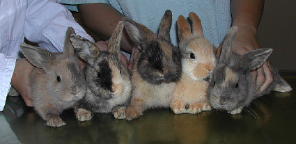 Geimpft wurden auch die Kaninchen von Herrn Eulermann. Hier sehen sie Laura mit „Peter“ das 10-jährige (!) Böckchen, bei dem wir auch eine Blutuntersuchung als Seniorcheck (siehe: Fall des Monats 5-2005 und Wissenswertes: Vorsorge beim älteren Hund) durchführten.