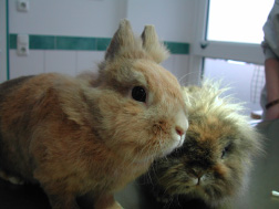 Die Löwenköpfchen von Frau Kettler kommen regelmäßig zur Zahnkontrolle. Bei den beiden 5-jährigen Kaninchenböckchen „Flocke“ und „Mücke“ müssen immer wieder die Zähne korrigiert werden.