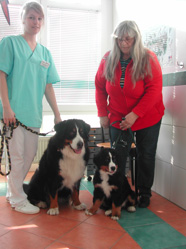 Zur Impfung war auch „Ella“, die 12 Wochen alte Berner Sennenhündin von Frau Marx in der Praxis, begleitet wurde sie von „Gesa“, der 9-jährigen Berner Sennhündin, bei der eine Gelenkinjektion von Dr. Rogalla durchgeführt wurde.