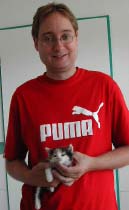 Herr Faulstich ist ein großer Katzenfreund und hat versucht zwei kleinen Katzenwelpen das Leben zu retten. Er hat sie halbverhungert und voller Flöhe und Würmer gefunden. Leider hat es trotz aller Mühen nur ein kleines Kätzchen geschafft.