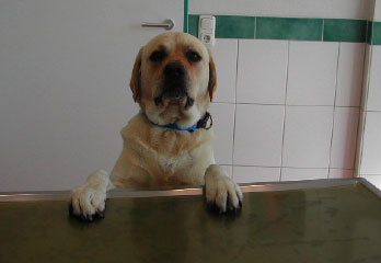 Juckreiz hatten auch „Rocky“, der Labradorrüde von Frau Walther, der übrigens immer wieder begeistert kommt und sofort auf den Behandlungstisch möchte und „Kira“, die Golden Retrieverhündin von Herrn Friedrich. Allerdings hatten die beiden einen sogenannten „Hot Spot“, eine örtlich begrenzte, eitrig-schmierige Hautentzündung, die mit Spezialshampoos und Antibiotika behandelt werden musste.