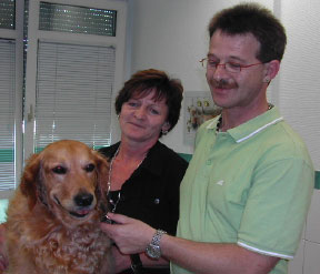 Zu meinem Frauchen Dr. Rogalla kommen sehr viele Patienten, auch von weit her, um wegen Schmerzen am Bewegungsapparat eine Goldimplantation durchführen zu lassen. „Max“, der Hund der Familie Müller, hatte mit seinen 2 Jahren schon Probleme mit den Ellbogen und wurde deswegen behandelt. Zur Unterstützung hat er sich seine Freundin mitgebracht.
