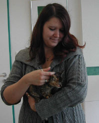 Frau Greim, unsere Assistenztierärztin ist nun schon drei Monate in der Praxis und wir sind froh über ihre Unterstützung. Da sie gleichzeitig ihre Doktorarbeit macht, ist sie nur mit einer halben Stelle bei uns und vielleicht haben deswegen noch nicht alle von Ihnen sie kennen gelernt.