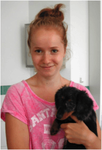 Familie Böttcher stellte uns den kleinen „Snoopy“ einen Zwergdackelrüden zur Allgemeinuntersuchung und Impfung vor – hier auf dem Arm der Tochter Anja – Snoopy erobert schnell alle Herzen.
