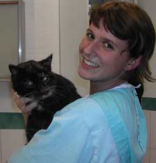 Und jetzt möchte ich Ihnen nach den Babys eine Seniorin vorstellen: „Tootsie“, die Katze der Familie Haussmann ist nämlich schon stolze 22 ( !!! ) Jahre alt und es geht ihr sehr gut. Sie hat eine kleine Zyste im Nackenbereich, aber Dr.Rummel hat mit Frau Hausmann besprochen, dass wir „Tootsie“ deswegen nicht operieren müssen.