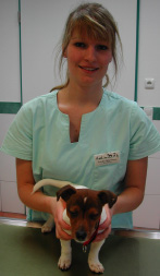 „Sina“ die kleine Jackrusselhündin von Frau Schroth wurde zur Impfung vorgestellt. Die Kleine ist putzmunter, gesund, super gelaunt und wird hier von Laura, unserer Auszubildenden im 2.Lehrjahr gehalten. Laura hat übrigens im aktuellen Zwischenzeugnis nur Einser und wir sind alle sehr stolz auf sie!!! Nun wird sie im Februar einen einwöchigen Laborkurs besuchen, um auch in diesem Bereich noch mehr zu lernen.