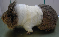 Familie Linhart war sehr froh ihr Meerschweinchen „Moritz“ nach einer gelungenen Tumoroperation wieder abholen zu können. Der Kleine erhielt eine Inhalationsnarkose und dann entfernte Dr. Rogalla einen großen Tumor an der rechten Schulter.