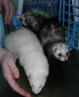 Dann hat es bei uns auf der Station wieder gewuselt. Diese drei kleinen Frettchendamen waren zur Kastration bei uns. Nach der Inhalationsnarkose waren sie ganz schnell wach und turnten gleich wieder durch den Käfig.