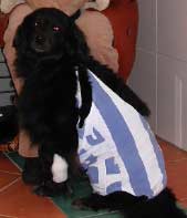 Vorstellen möchte ich Ihnen aber noch unbedingt die kleine „Sara“, die an einem Brusttumor, der zum Glück gutartig war, operiert wurde. Mein Frauchen kommt ja aus Gelsenkirchen und als Schalkefan war ich natürlich von ihrem Dress hochbegeistert! Trotz meiner Komplimente wollte sie aber nicht mit mir so auf Schalke gehen – schade!