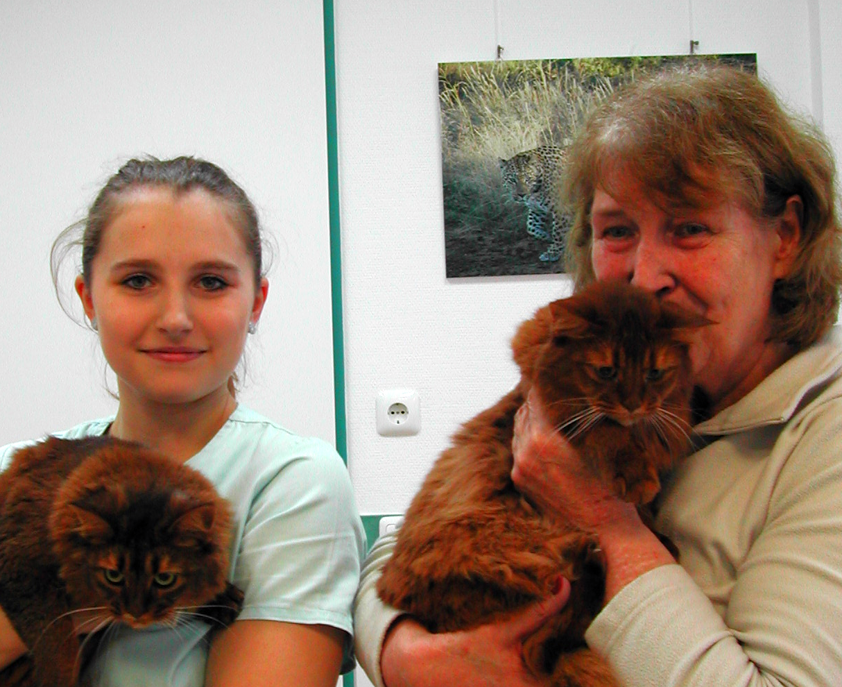 Zur Gesundheitsuntersuchung und Impfung stellte uns Frau Scharch ihre wunderschönen Somalikatzen vor.