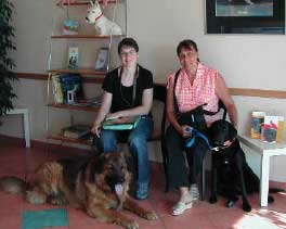 Viele von meinen Kumpels haben ja Probleme mit den Gelenken und können schlecht laufen, und kommen dann zu uns um sich eine Goldimplantation machen zu lassen . Besonders hat mir „Willy „ ein Leonberger –Mix gefallen, der hat nämlich gleich seine Freundin „Frane“ aus Luxemburg,eine Labradordame, mitgebracht und so haben die beiden sich nacheinander an einem Vormittag bei uns diesen Eingriff durchführen lassen.
