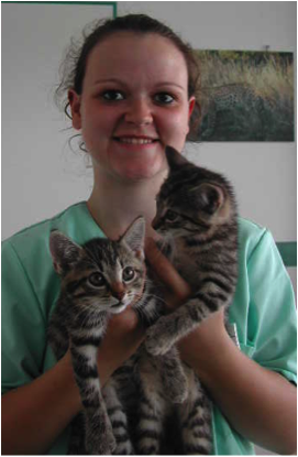Mit ihren Katzenwelpen kamen unter anderem Familie Göbel. „Luna“ und „ Molly“ haben den Besuch, die Untersuchung und die Impfung hervorragend absolviert. Hier auf dem Arm von Leanne, die sichtlich Spaß hat.