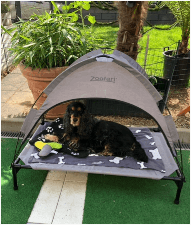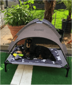 Ja – und dort ist es noch viel heißer als bei uns. Ich lümmele mich meist im Haus rum, während Jacko von Frau John mir diesen Gruß von seinem zu Hause zu gesendet hat, mit so einem schönen Sonnendach lässt es sich gut aushalten.