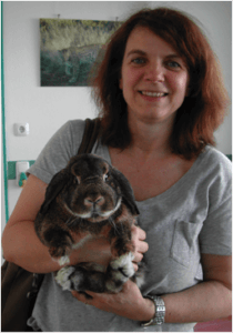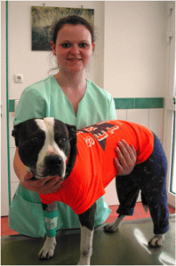 Da unsre Praxis zusätzlich auf Zahnbehandlungen spezialisiert ist, gibt es viele Zahnbehandlungen, stellvertretend lächelt diesmal Akira, der Amerikanische Stafford in die Kamera, ihr mußten leider auch einige Hautmastzelltumore entfernt werden – auf dem Foto ist sie ganz zufrieden im Arm von Leanne.