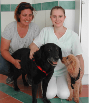 Frau Hillen kam mit ihren Zweien, der schon älteren Dame Lucy, die wir schon seit Jahren betreuen und dem quirrligen Buddy zur Kontrolle und Impfung. Diemal hilft Jessy beim foto-shooting.