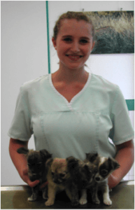 Jetzt kommen aber auch die anderen dran – aber zunächst will ich noch was ganz Schönes erzählen – es gab 2x Nachwuchs – beide fast gleich gross. Jessy strahlt – die 4 kleinen Hundebabys der Familie Trebing kamen zur ersten Impfung und