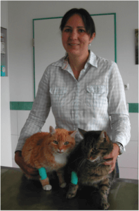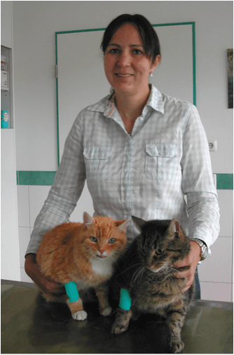 Die beiden Katzen von Frau Reuhl sind da eine ganz andere Altersklasse und benötigen auch die entsprechende altersgemäße Fürsorge. Beide kamen zum regelmäßigem Alterscheck: Kontrolle der Blutwerte und Blutdruckmessung. Bei Tassilo, der Dunklere von beiden, haben sich die Werte mit der Behandlung gebessert und bei Paulchen, dem roten Kater, wurde der Blutdruck nachkontrolliert. Er leidet wie viele ältere Katzen an Bluthochdruck und erhält genau wie wir Menschen Blutdrucktabletten, um die schlimmen Folgen wie Blindheit, Herzprobleme, Nierenversagen …. zu verhindern. Beiden geht es altersgerecht gut.