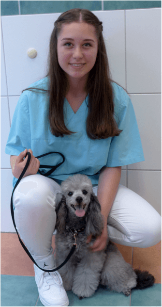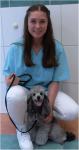 Diesen Monat hatten wir wieder eine Schulpraktikantin bei uns, Lea hat es in den 2 Woche gut gefallen, hier posiert sie mit dem Pudel Lucy von Frau Wagner, die Kleine hatte eine Magenverstimmung und wir haben ihr mit Spritzen ganz schnell gegen das Erbrechen und die Magenschmerzen helfen können.