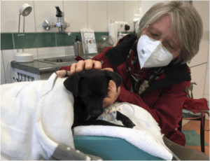 Frau Zeh stellte uns Dobby vor, der kleine Kerl ist ein Russky Toy- Chihuahua – Rehpinscher Mix und völlig unerschrocken. Er wurde von Dr. Rogalla kastriert und gleichzeitig wurden ihm 4 persistierende Milcheckzähne entfernt. Sehr schnell war Dobby wieder munter und seine Besitzerin, Frau Zeh, sehr froh, dass er alles so gut überstanden hatte.