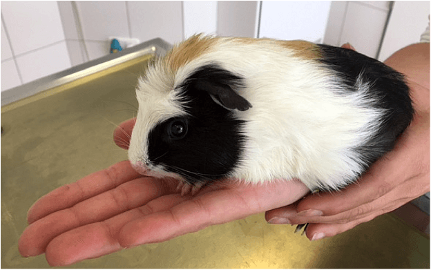 Das Kerlchen wiegt immerhin stolze 290 g und passt locker in eine Hand. Er wurde von Dr. Rogalla kastriert, da er schon seine Meerschweinchenfreundin decken wollte – nun geht es ihm schon wieder sehr gut und Familie Finger – Heißig muss nicht mit unerwartetem Nachwuchs rechnen!