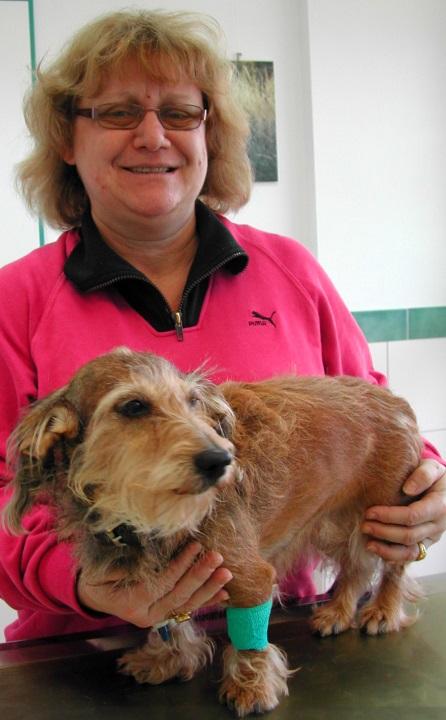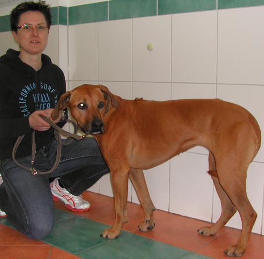 Frau Beerenbrock kam mit ihrer 6-jährigen Rhodesian Ridgebackhündin „Baaya“ auf Empfehlung zu Dr. Rogalla wegen immer wiederkehrender Lahmheit trotz tierärztlicher Behandlung. Dr. Rogalla unterzog sie einer speziellen Schmerztherapie – das ist schließlich seit vielen Jahren ihr Spezialgebiet – und inzwischen ist Baaya seit Monatan absolut lahmheitsfrei und sie kann unbeschwert herumtollen! Frauchen ist darüber sehr glücklich.