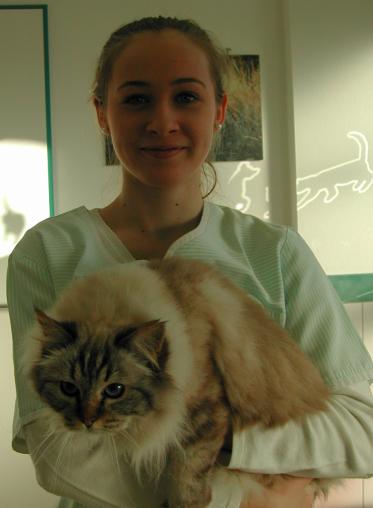 „Sherani“, die wunderschöne Heilige Birma Katze von Frau Dietrich, hat leider eine Chronische Niereninsuffizienz und erhält nun regelmäßig Infusionen zur Unterstützung der Nierenfunktion. Auf dem Foto ist sie auf dem Arm von Tabea. Sie hat ihr Schülerpraktikum bei uns gemacht und war begeistert von den Tagen bei uns, Tabea kam jeden Morgen gut gelaunt und wir alle haben uns über die Zeit mit ihr gefreut.