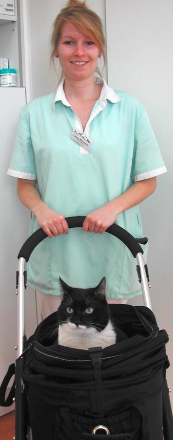 Zur Zahnsanierung kam auch „Isi“, die Katzendame der Familie Rauh. Ist das Katzentransportfahrzeug – hier mit Laura am Steuer – nicht Spitze?
