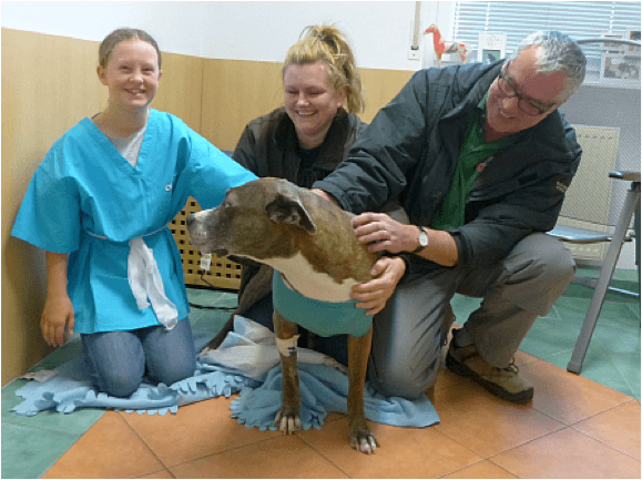 „Romeo“, der American Staffordshireterrier der Familie Pradella, hatte andere Probleme. Bei ihm wurden diverse Hauttumore entfernt und die Zähne gereinigt. Unsere 10 –jährige