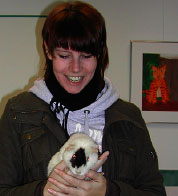 Svenja mit Paula, das kleine Meerschweinchen mit den Blasensteinen, das Sie schon im letzten Monat kennen gelernt haben.