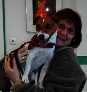 Der Verdacht auf eine Krebserkrankung lag vor und wurde durch die sofortige Untersuchung von Zellabstrichen der veränderten Stelle am Ohr bestätigt. Damit war entschieden, dass „Susi“ operiert werden musste. Dr. Rogalla führte dann die Ohrspitzenamputation durch und „Susi“ trug 3 Wochen einen schicken Ohrverband. Inzwischen ist die Naht gut abgeheilt, der Krebs (siehe: Diagnose Krebs was tun und Fall des Monates 8/08) konnte komplett entfernt werden, und Frau Genuth ist glücklich, dass es ihrem Liebling wieder gut geht, und das Karzinom so frühzeitig erkannt und sofort entfernt wurde.