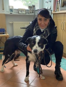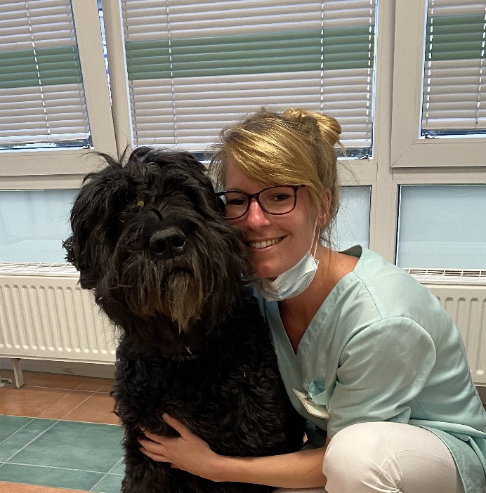 Einen Tumor hatte auch Kenzo, der 11-jährige Russisch Terrierrüde von Frau Bauder, allerdings an einer heiklen Stelle – nämlich am Popo: ein sogenannter Perianaltumor. Die Operation ist nicht einfach, da es unter keinen Umständen zu einer Verletzung der Nerven des Schließmuskels kommen darf. Das haben Dr. Rogalla und Ihre OP Assistenz Laura Klockow (hier mit Kenzo im Arm) hervorragend operiert – alles klappt wieder. Zum Glück stellte sich heraus, dass der Tumor gutartig war und wir alle haben uns sehr gefreut!!!