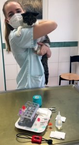 Solche Sorgen kennt Happy (hier auf dem Arm von Laura), der Katzenwelpe von Frau Kunze gar nicht. Der kleine Kerl ist ein echter Löwe, nämlich am 2.8.21 geboren, und kam zur Gesundheitsuntersuchung und Erstimpfung und hat alles ganz wunderbar überstanden. Mein Frauchen, Dr. Rummel, ist ja unsere Katzenexpertin und spricht bei den ersten Besuchen immer sehr viele Themen an um zu beraten und zu unterstützen.
