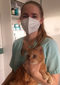 Häufig sehen wir Orange, den 11-jährigen roten Kater von Frau Roos, der leider eine chronische Pankreatitis hat und immer mal wieder Entzündungsschübe zeigt. Wir freuen uns immer wieder über Orange, der inzwischen ein echter Profi ist und mit regelmäßiger medizinischer Unterstützung trotz seiner Probleme ein sehr gutes Leben führt.
