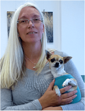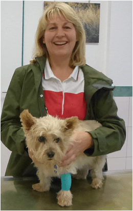 Amber, die 10-jährige Terrier-Hündin von Frau Geisler hatte Zahnprobleme. Sie wurde auf unserer Zahnstation behandelt und nun kann sie wieder ohne Schmerzen kauen, Frauchen ist sehr zufrieden. Der postnarkotische Blutcheck war ok – Amber hat die Narkose perfekt überstanden – und der kleine Druckverband wurde nach dem Fotoshooting gleich entfernt.