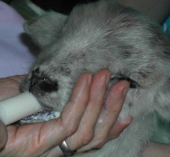 Endlich öffnete das Kleine wieder die Augen und wir konnten die warme Schafmilch einflößen.