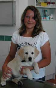 Sie ist ausgelernte Tierarzthelferin im 1. Berufsjahr und wird nun von Tanja eingearbeitet. Ich habe sie schon kennen gelernt und finde sie auch sehr nett. Mein Frauchen hat gesagt, dass wir ihr alle helfen müssen, weil sie nun in kurzer Zeit ganz viele Sachen lernen muß! Also ich helfe auf jeden Fall gerne!