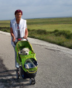 Nun hat mir ein Kumpel, der immerhin schon 16 ist ein Urlaubsfoto geschickt, auf dem er im hoteleigenen Hundebuggy sitzt und dadurch auch bei längeren Spaziergängen dabei sein konnte! Na, das ist doch eine gute Idee!